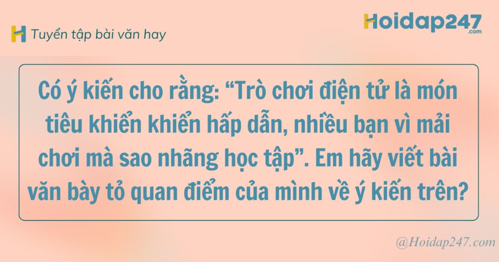 Đề bài: Có ý kiến cho rằng: “Trò chơi điện tử là món tiêu khiển khiển hấp dẫn, nhiều bạn vì mải chơi mà sao nhãng học tập”. Em hãy viết bài văn bày tỏ quan điểm của mình về ý kiến trên?