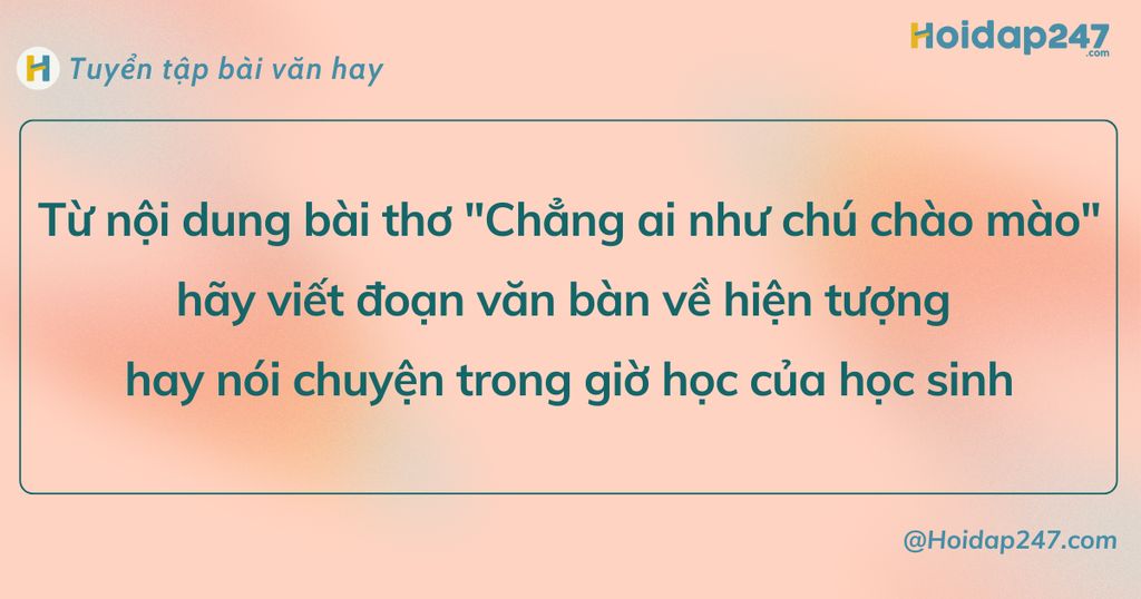 Từ nội dung bài thơ "Chẳng ai như chú chào mào" hãy viết đoạn văn bàn về hiện tượng hay nói chuyện trong giờ học của học sinh