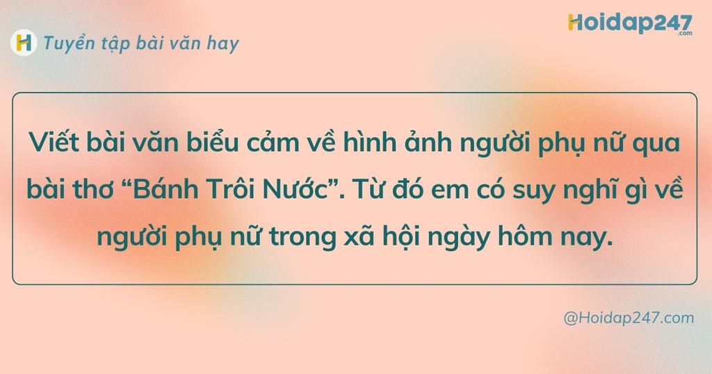 Viết bài văn biểu cảm về hình ảnh người phụ nữ qua bài thơ trên. Từ đó em có suy nghĩ gì về người phụ nữ trong xã hội ngày hôm nay.