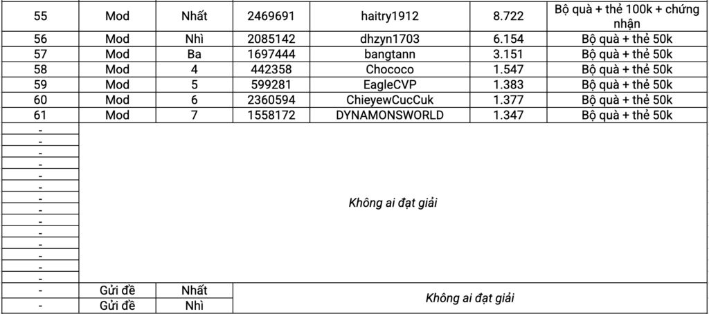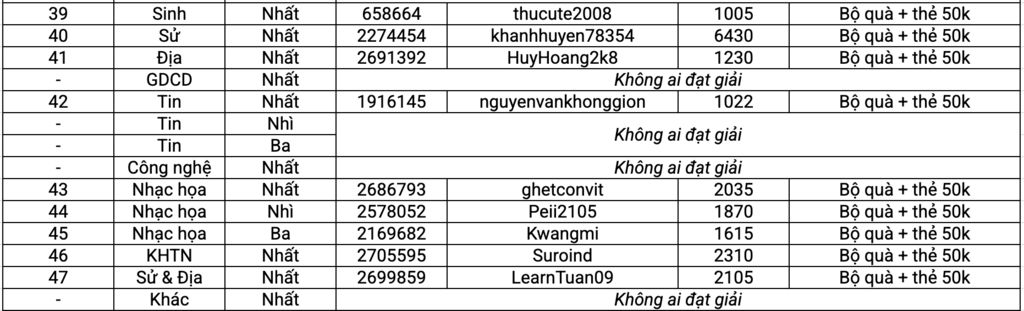 Lưu ý: Các bạn nhận được giải hãy nhập thông tin nhận quà bằng cách click vào nút "Gửi thông tin nhận quà" bên dưới nhé! Sau ngày 09/10, nếu không thấy thông tin liên hệ thì quà tặng sẽ được bổ sung vào quỹ quà tặng điểm danh.