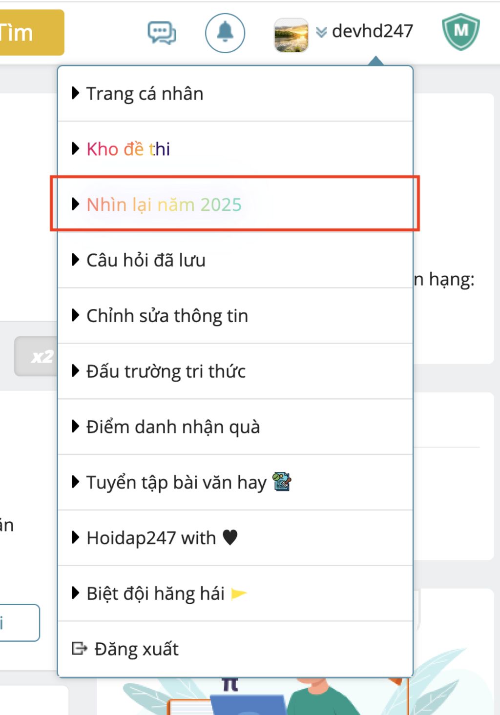 Bước 1: Từ menu cá nhân, bấm chọn mục Nhìn lại năm 2025