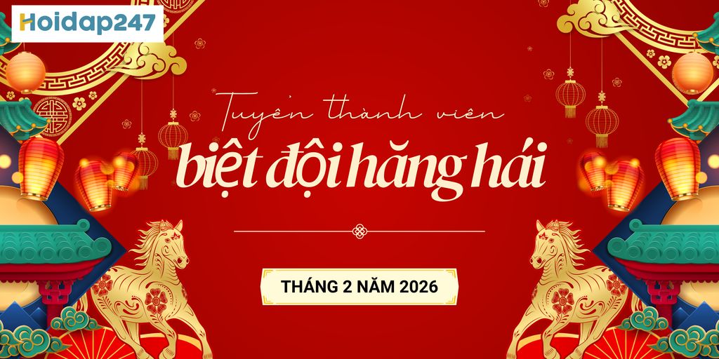 Biệt đội Hăng Hái Hoidap247.com tuyển thành viên tháng 02, năm 2026. Khi là thành viên của Biệt đội, các em sẽ nhận được nhiều giúp ích trong học tập, các phần quà hấp dẫn vào mỗi tháng, khóa đề thi tặng bất ngờ, giao lưu với các bạn học sinh giỏi giang trên khắp cả nước và đặc biệt là nếu hoạt động tích cực và năng nổ các em sẽ được xét duyệt vào đội Mod Hoidap247! (là thành viên đội Mod được học tập miễn phí trên Tuyensinh247 với tổng giá trị khoá học lên đến 70 triệu đồng)