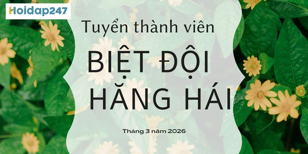 Biệt đội Hăng Hái Hoidap247.com tuyển thành viên tháng 03, năm 2026. Khi là thành viên của Biệt đội, các em sẽ nhận được nhiều giúp ích trong học tập, các phần quà hấp dẫn vào mỗi tháng, khóa đề thi tặng bất ngờ, giao lưu với các bạn học sinh giỏi giang trên khắp cả nước và đặc biệt là nếu hoạt động tích cực và năng nổ các em sẽ được xét duyệt vào đội Mod Hoidap247! (là thành viên đội Mod được học tập miễn phí trên Tuyensinh247 với tổng giá trị khoá học lên đến 70 triệu đồng)