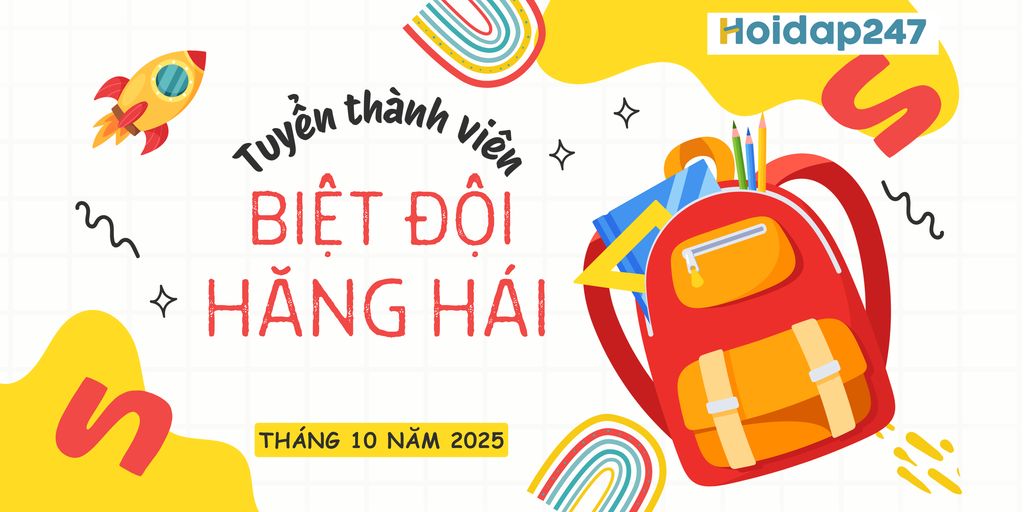 Biệt đội Hăng Hái Hoidap247.com tuyển thành viên tháng 10, năm 2025. Khi là thành viên của Biệt đội, các em sẽ nhận được nhiều giúp ích trong học tập, các phần quà hấp dẫn vào mỗi tháng, khóa đề thi tặng bất ngờ, giao lưu với các bạn học sinh giỏi giang trên khắp cả nước và đặc biệt là nếu hoạt động tích cực và năng nổ các em sẽ được xét duyệt vào đội Mod Hoidap247! (là thành viên đội Mod được học tập miễn phí trên Tuyensinh247 với tổng giá trị khoá học lên đến 70 triệu đồng)