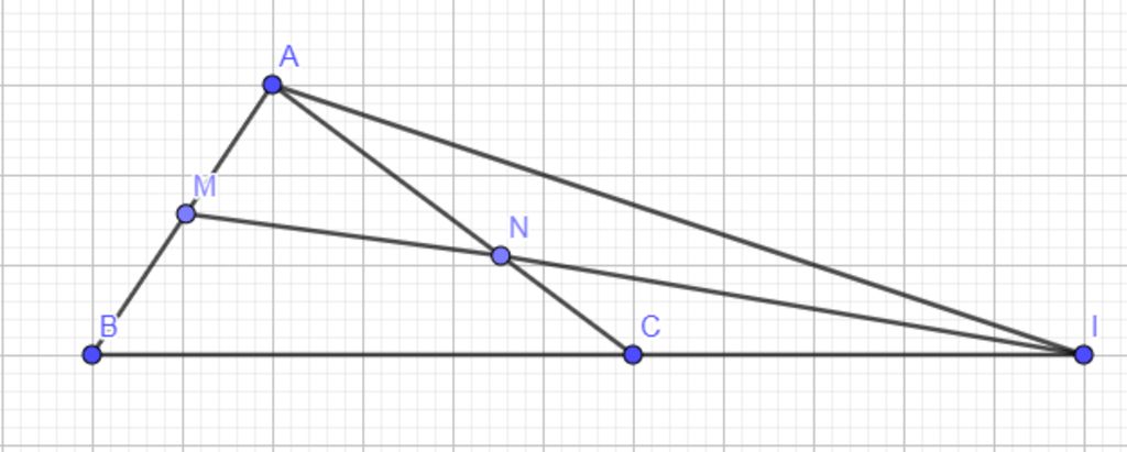 Từ (1) và (2) có diện tích tam giác AMI gấp đôi diện tích tam giác CMI. Mà diện tích tam giác AMI bằng diện tích tam giác BMI nên diện tích tam giác BMI gấp đôi diện tích tam giác CMI