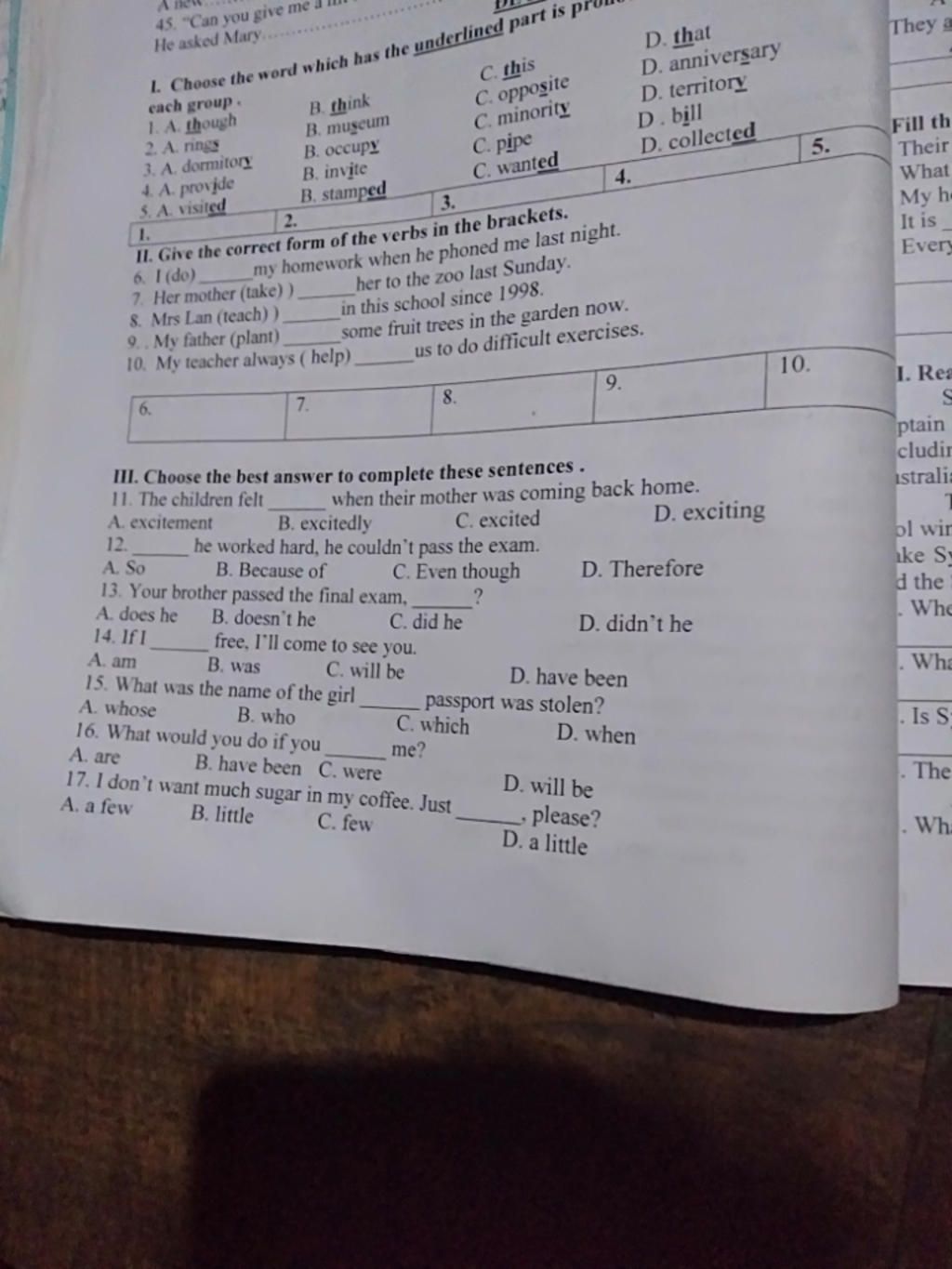 1. Choose the word which has the underlined part is pr