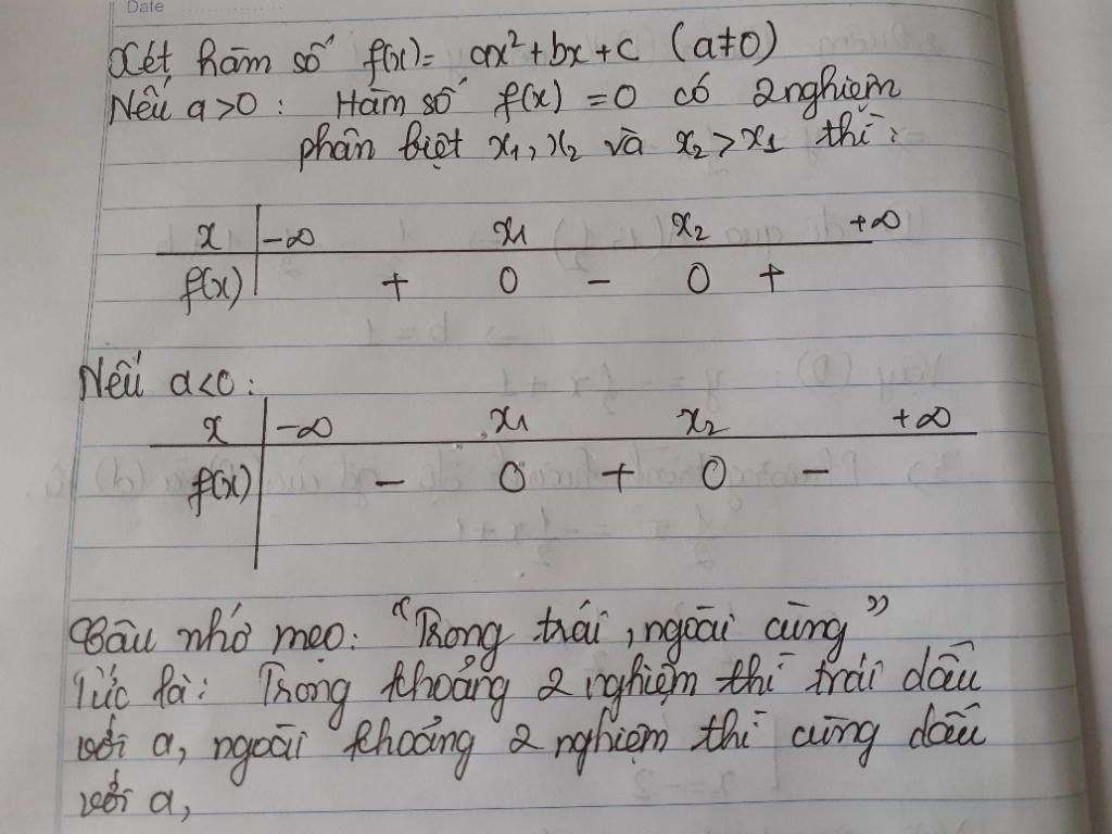 Xét dấu đa thức bậc hai sẽ học kĩ ở cấp 3.