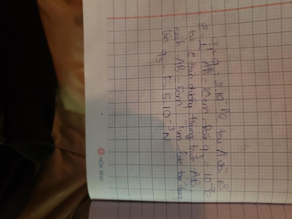 {F_1} = k\frac{{\left| {{q_1}{q_3}} \right|}}{{A{C^2}}} = {9.10^9}.\frac{{{{2.10}^{ - 8}}{{.10}^{ - 7}}}}{{{{\left( {0,05\sqrt 2 } \right)}^2}}}\\