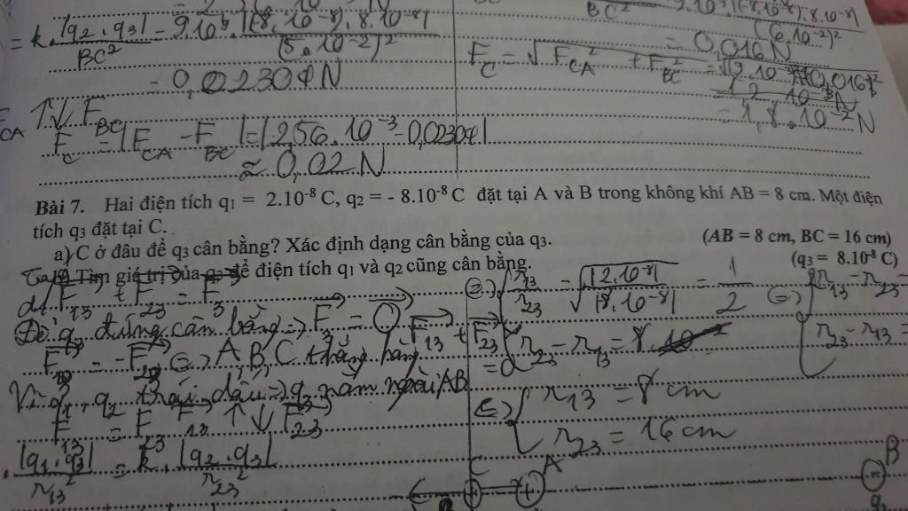 {E_2} = k.\frac{{\left| {{q_1}} \right|}}{{B{C^2}}} = {9.10^9}.\frac{{{{8.10}^{ - 8}}}}{{B{C^2}}}\\