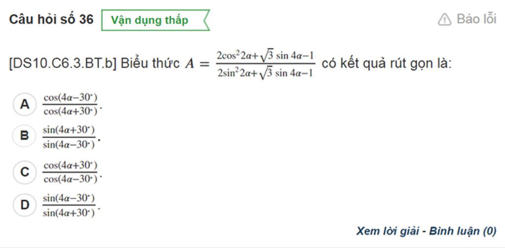 $\to A=\dfrac{\cos4x+\sqrt{3}\sin4a}{\sqrt{3}\sin4a-\cos4x}$