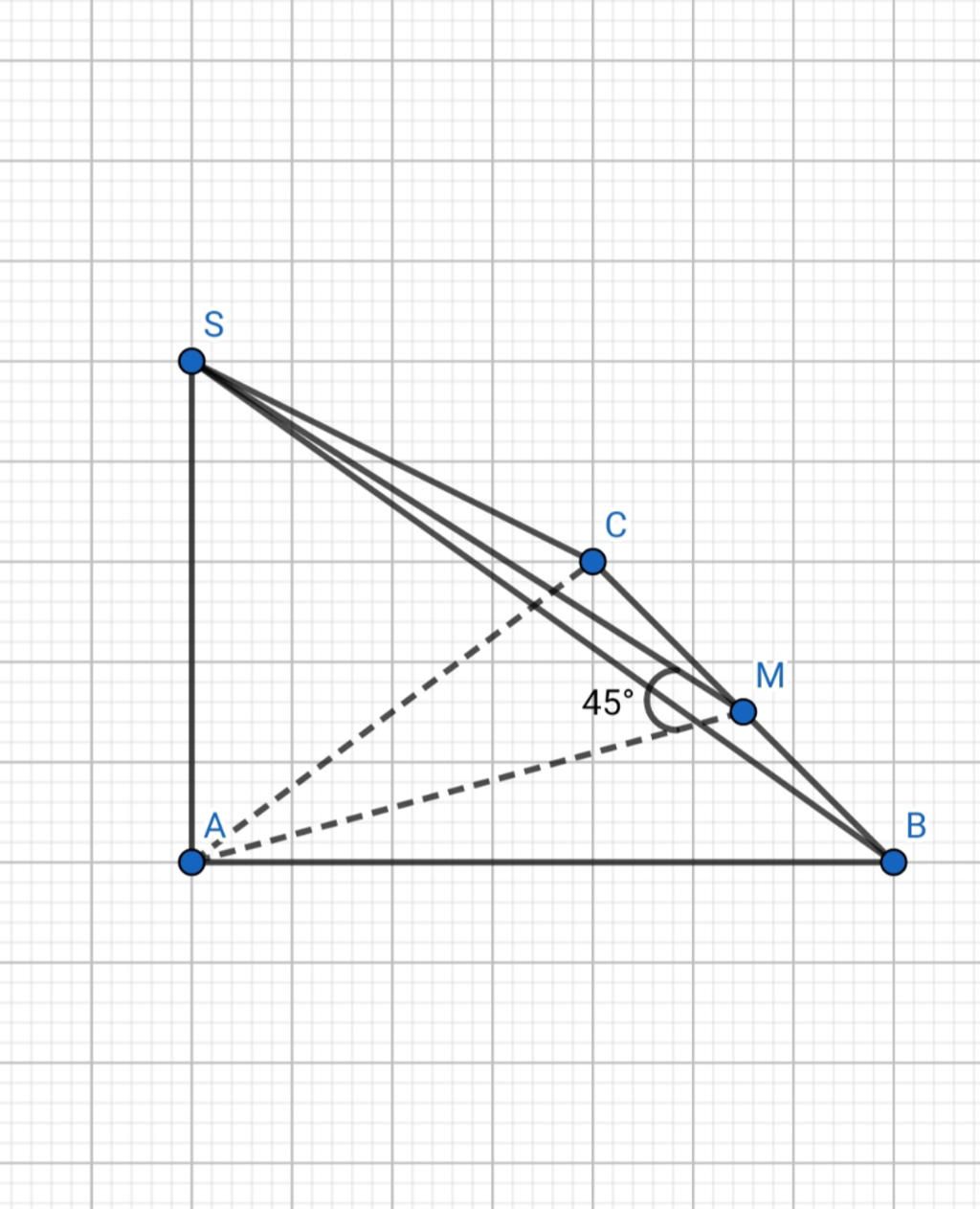 $\begin{cases}(SBC)\cap(ABC) = BC\\ SM\in(SBC)\\SM\perp BC\\ AM\in (ABC)\\AM\perp BC \end{cases}$