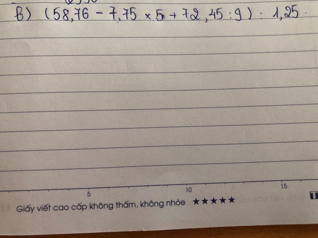 B) (58,76 - 7,75 x 5 + 72,45 : 9 ) : 1,25