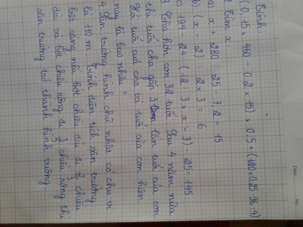 ( 0,15 x 460 - 0,2 x 15 ) x 0,5 + ( 120 x 0,25 - 96 : 4 )