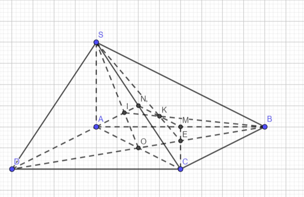 Ta có $M,N$ là trung điểm $AB,SC, O$ là trung điêrm $AC,BD$