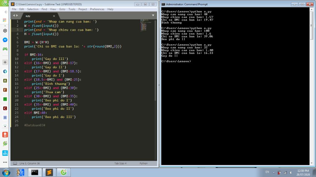 print('Chi so BMI cua ban la: '+ str(round(BMI,2)))