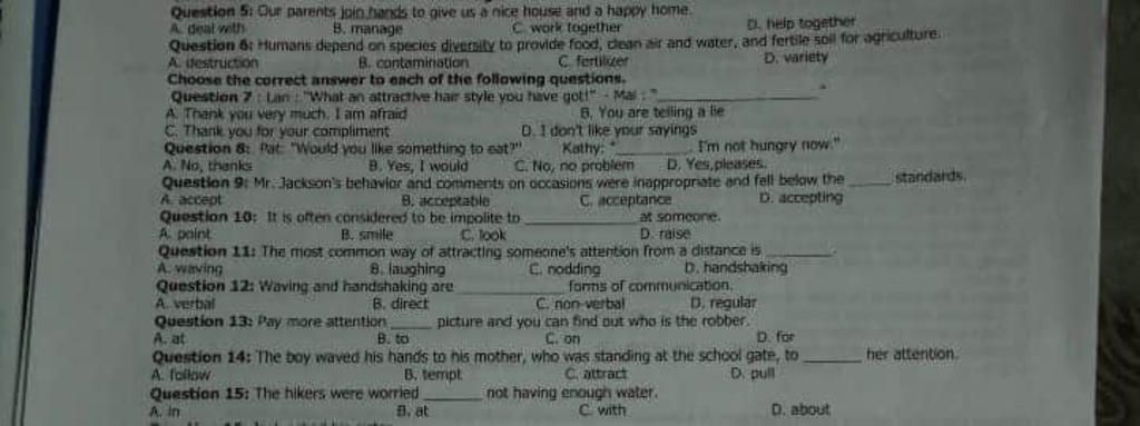 Question 5: Our parents joio.bands to give us a nice house and a happy home.