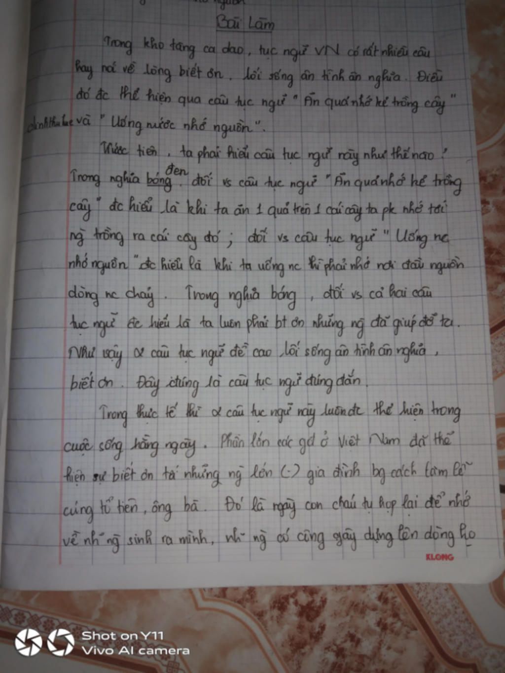 Nước Việt Nam ta với hơn 4000 năm lịch sử chống giặc ngoại xâm và giữ nước vẫ luôn sống trên những phẩm chất đạo đức cao đẹp. Với hàng ngàn đạo lí nhân sinh, trong đó có cả lòng biết ơn - một đạo lí tốt đẹp của dân tộc ta. Cũng từ đó, câu tục ngữ '' Uống nước nhớ nguồn '' xuất hiện. Nó là đúc kết của những kinh nghiệm quý báu ông cha ta.