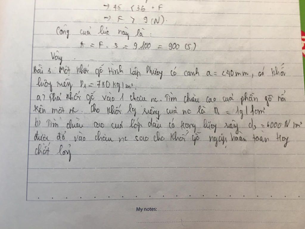 a. Chiều cao của phần gỗ nổi trên mặt nước là: