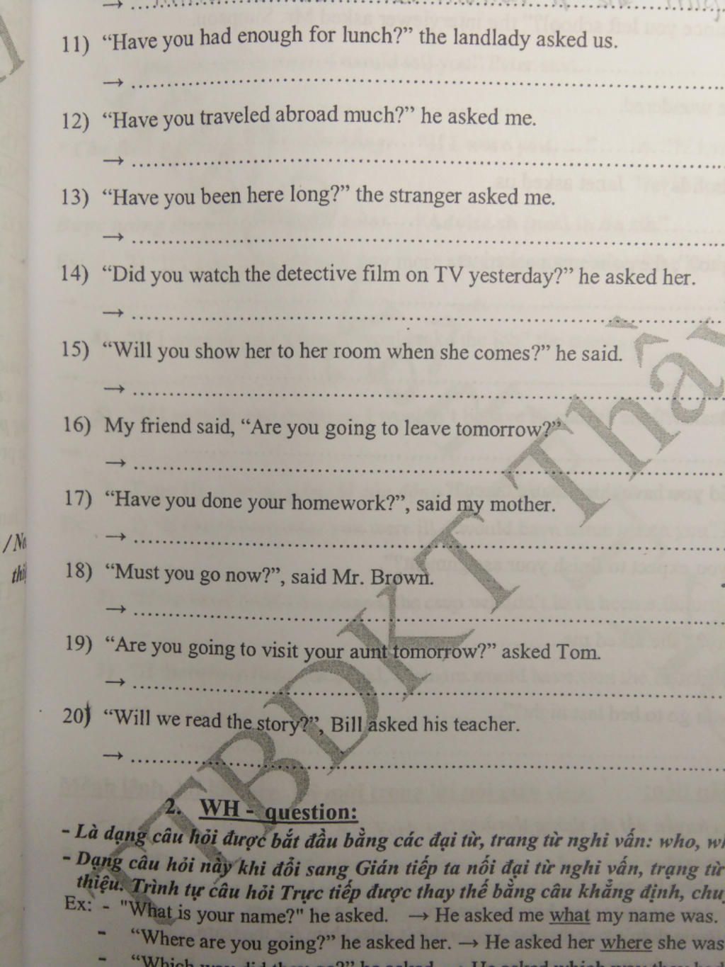 14.he asked her if she had watched the detective film on TV the day before