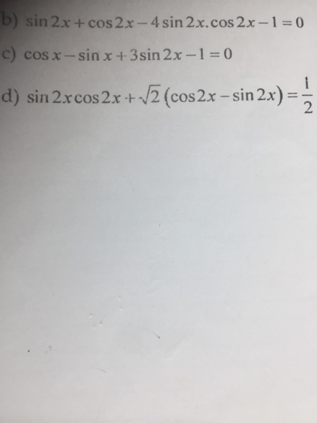 d)\sin 2x.\cos 2x + \sqrt 2 \left( {\cos 2x - \sin 2x} \right) = \dfrac{1}{2}\left( 3 \right)\\