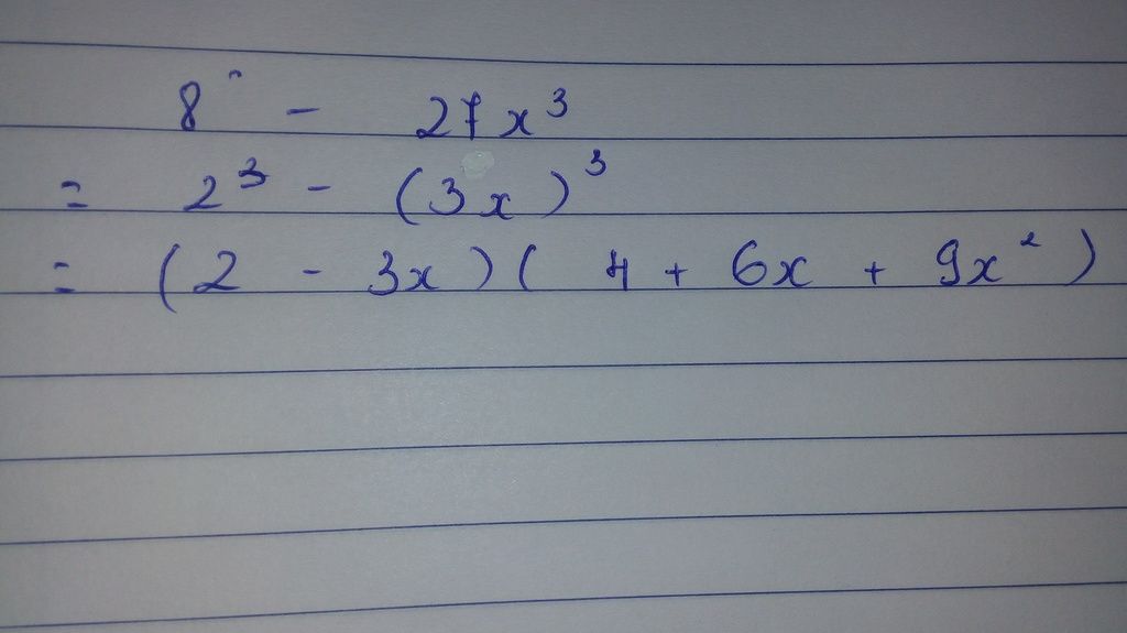 8- 27x^3 = ( 2-3x)(4 + 6x+ 9x^2)