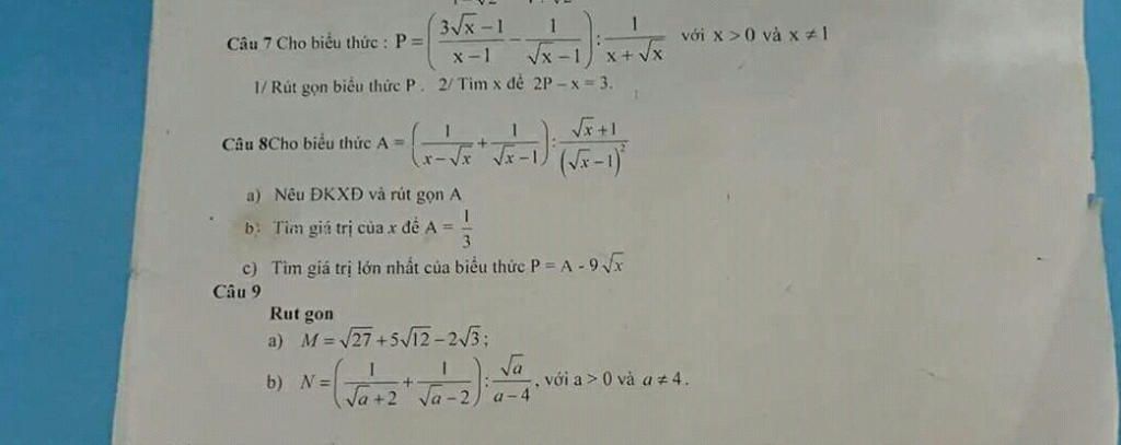 Câu 7 Cho biểu thức : P =