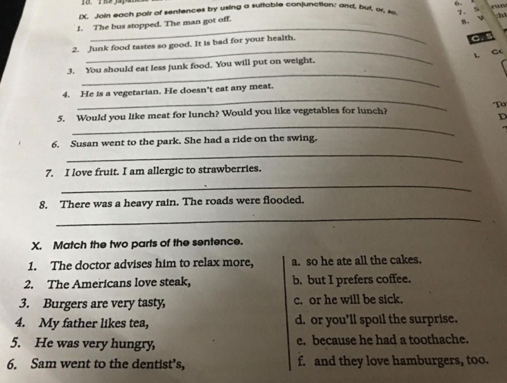 IX. Join each palr of sentences by using a sultable conjunction: and, but, or, so.