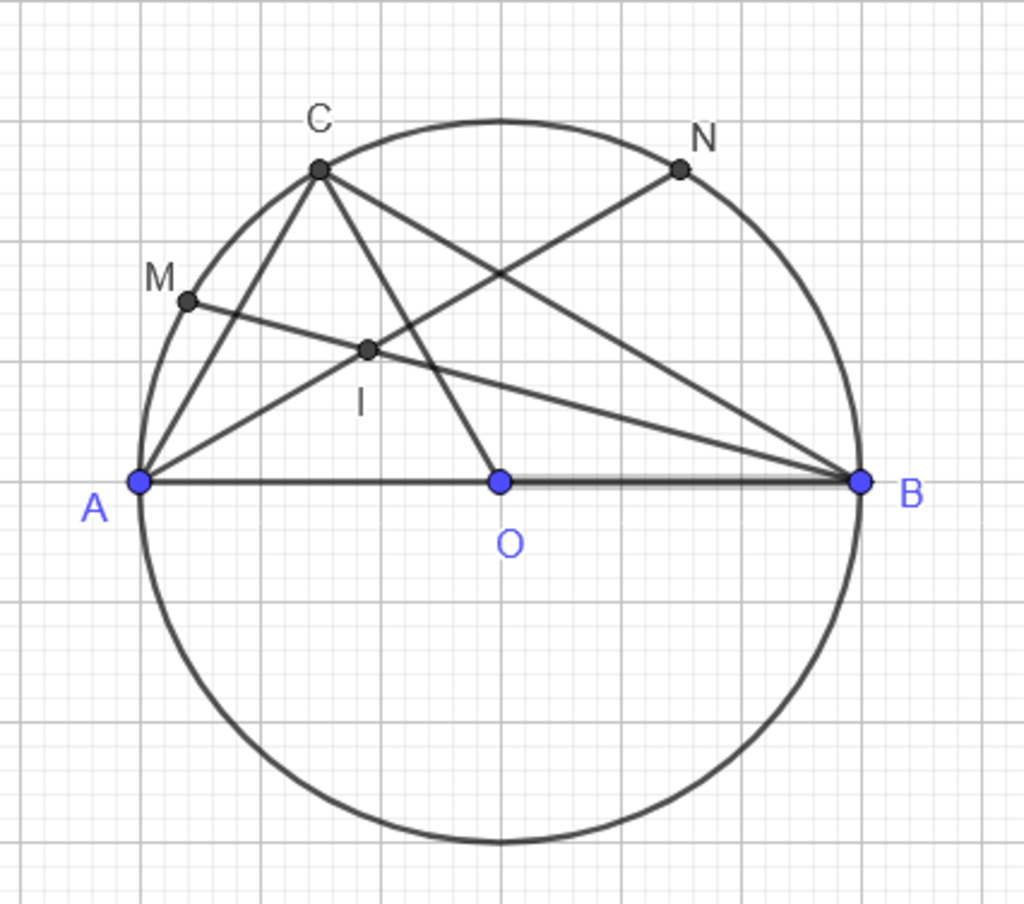 Tương tự $\widehat{CAN}=\widehat{BAN}$ (góc nội tiếp cùng chắn cung $CN$= cung $BN$) $\Rightarrow AN$ là đường phân giác của $\widehat{CAB}$
