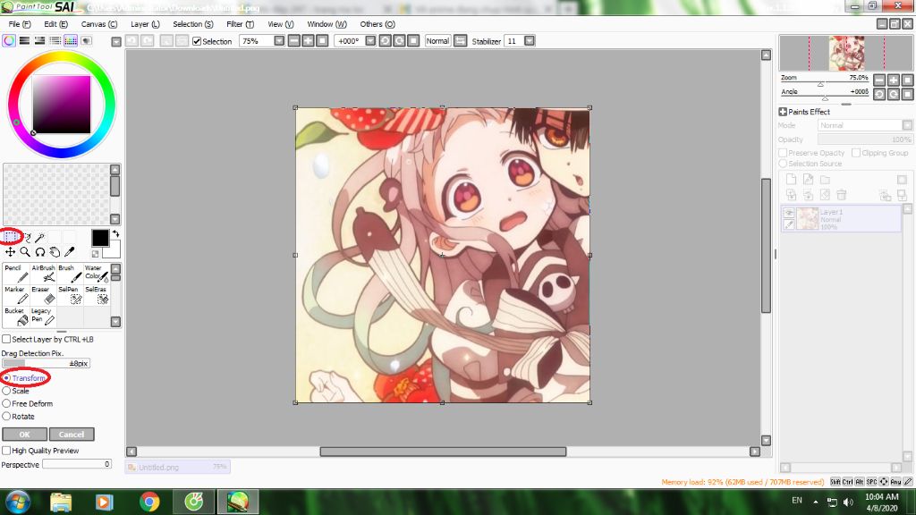 B6 : Chọn ô vuông ở góc mấy chỗ bút vẽ + Transform để chỉnh sửa lại cho phù hợp ảnh ở bảng 1 .