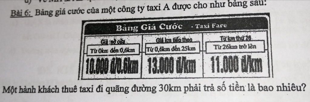 Tổng số tiền phải trả khi thuê taxi đi quãng đường 30km: 10000+317200+55000= 382200đ