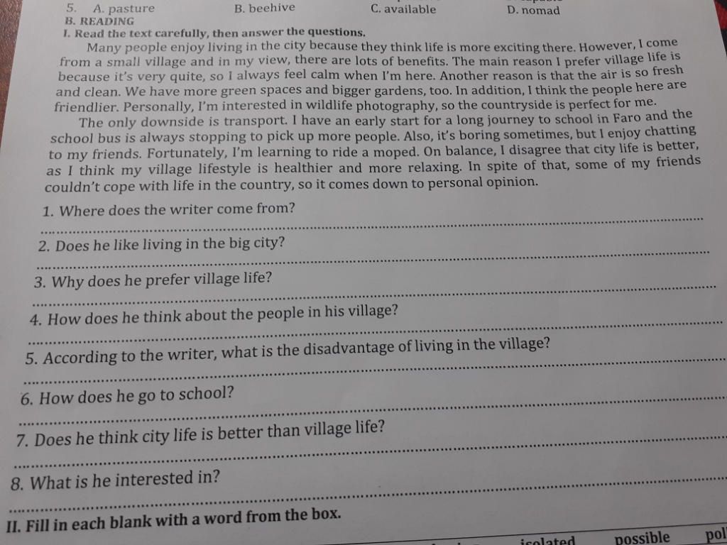 1. The writer come from a small village