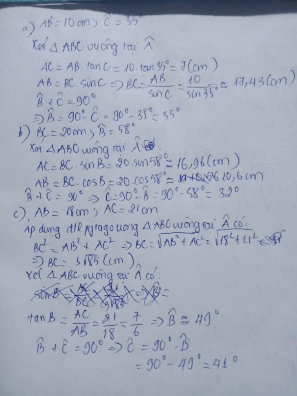 c) Xét `\Delta ABC` vuông tại `A` có: