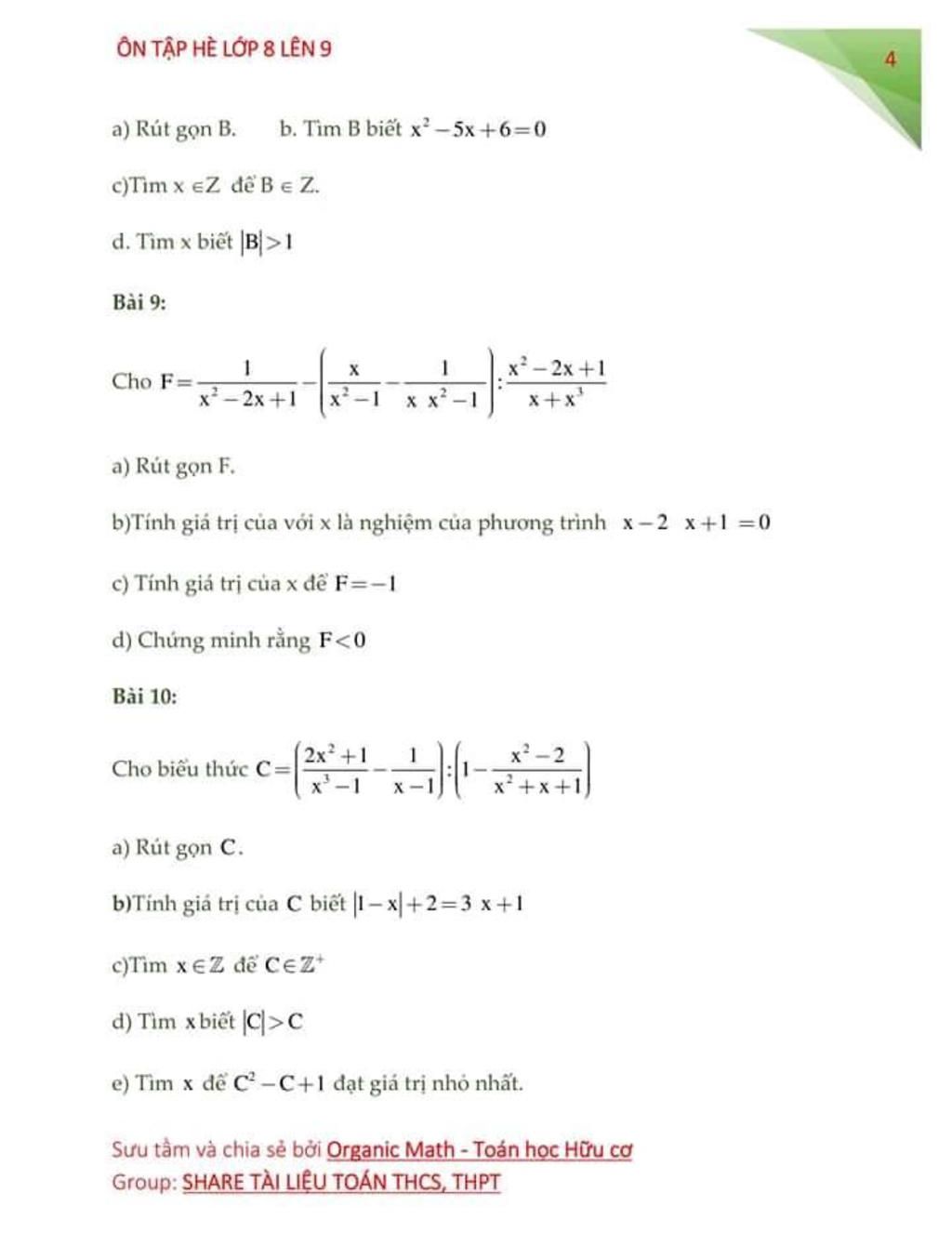 ÔN TẬP HÈ LỚP 8 LÊN 9