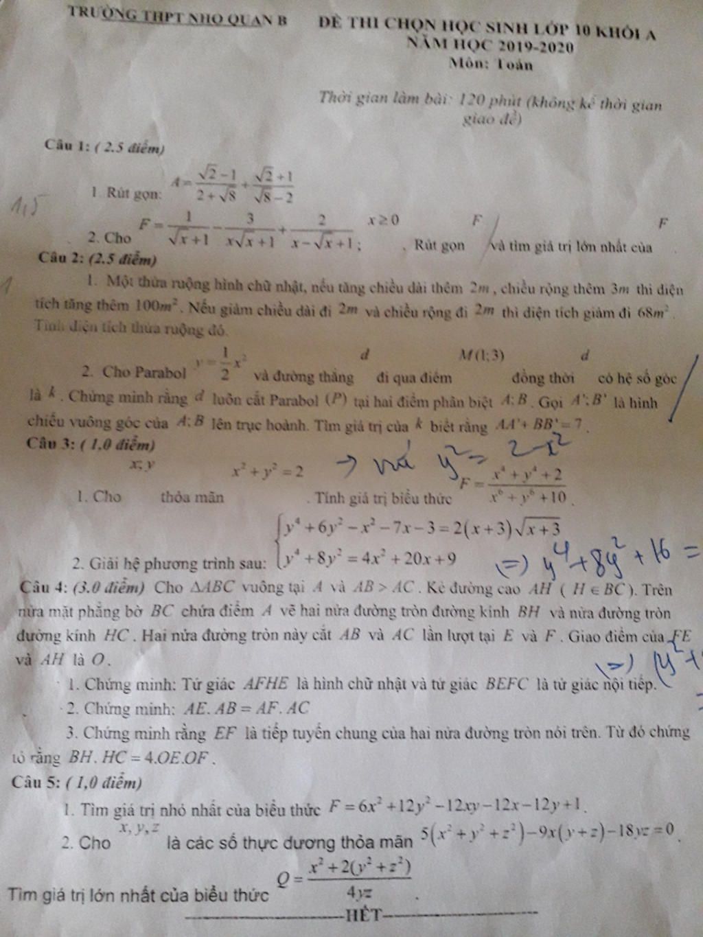 TRUONG THPT NHO QUAN B DE THI CHỌN HỌC SINH LOP 10 KHOI A