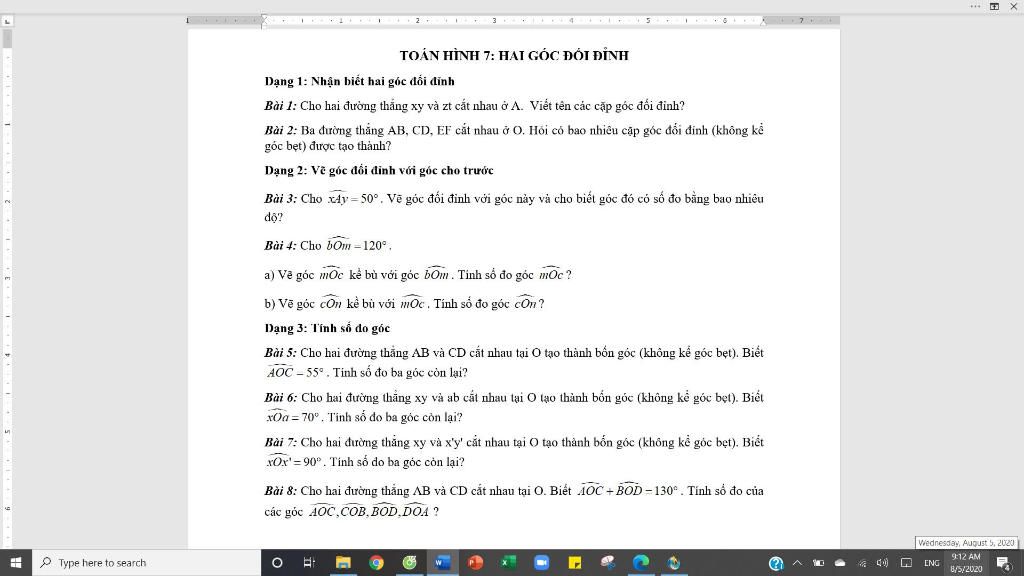TOÁN HÌNH 7: HAI GÓC ĐÓI ĐỈNH