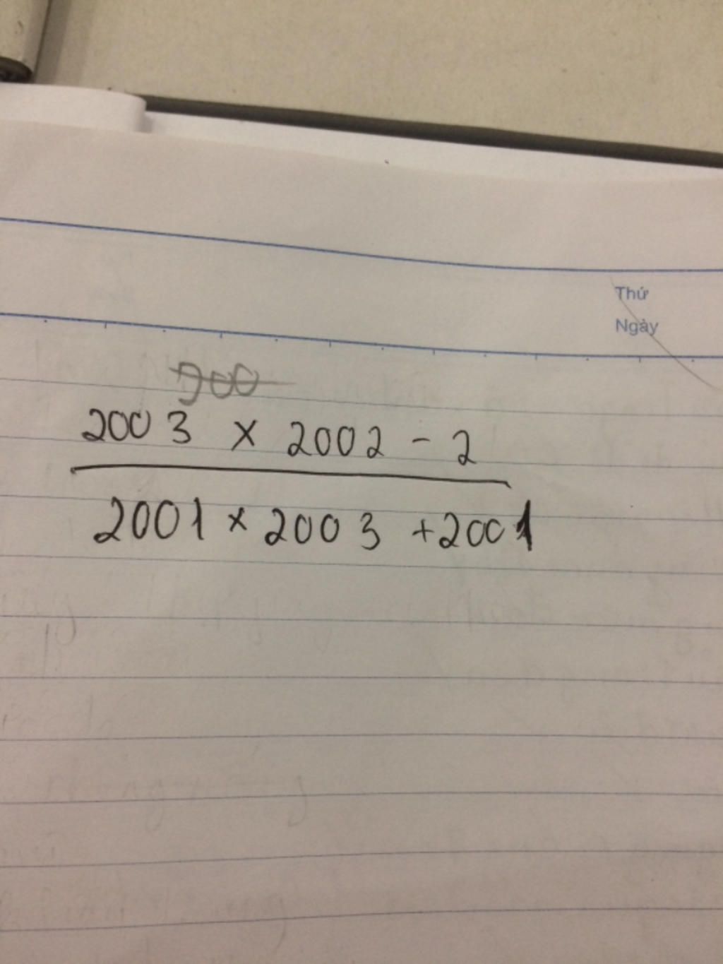 $=\dfrac{2003.(2002-1)+2001}{2001.(2003+1)}$