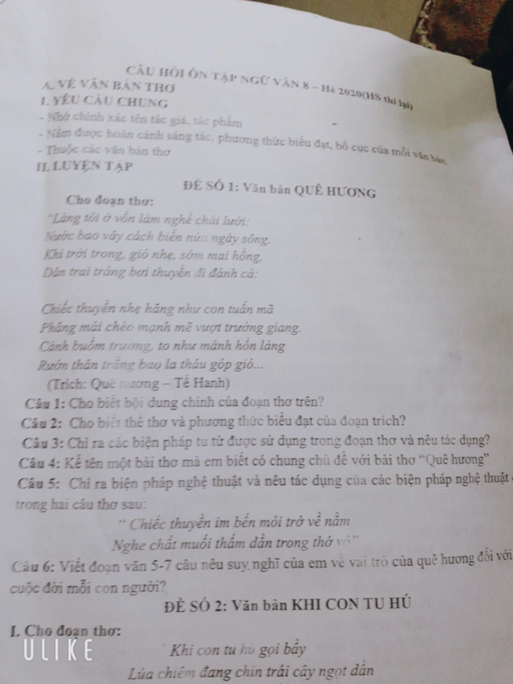 Câu 4: "Về quê " của Nguyễn Lãm Thắng