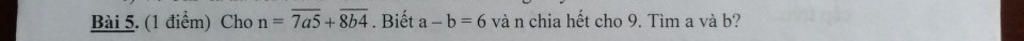`\overline{7a5}+\overline{8b4} \vdots 9`