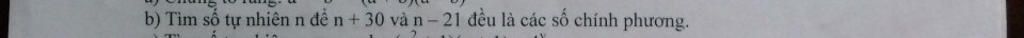 Để $n-21$ và $n+30$ là số chính phương thì tổng hoặc hiệu của chúng phải có tận cùng là