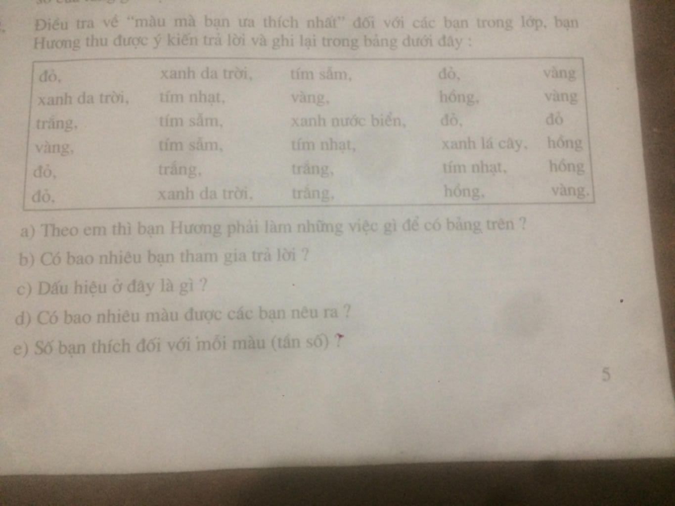 a, - bạn hương đã điều tra về màu ưa thích của các bạn trong lớp