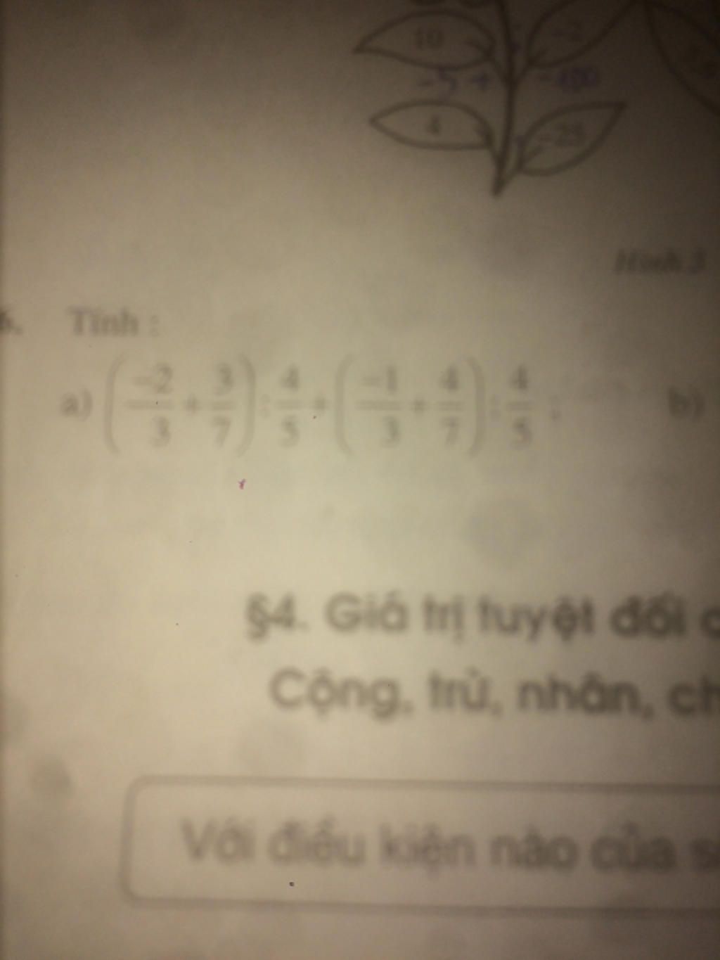 $= (\dfrac{-2}{3} + \dfrac{3}{7} + \dfrac{-1}{3} + \dfrac{4}{7}) ÷ \dfrac{4}{5}$