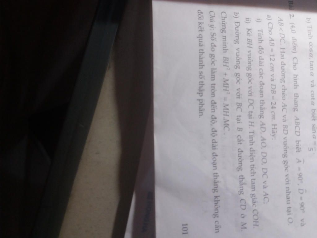 Bà 2. (4,0 điếm) Cho hình thang ABCD biết A -90°, D-90 và