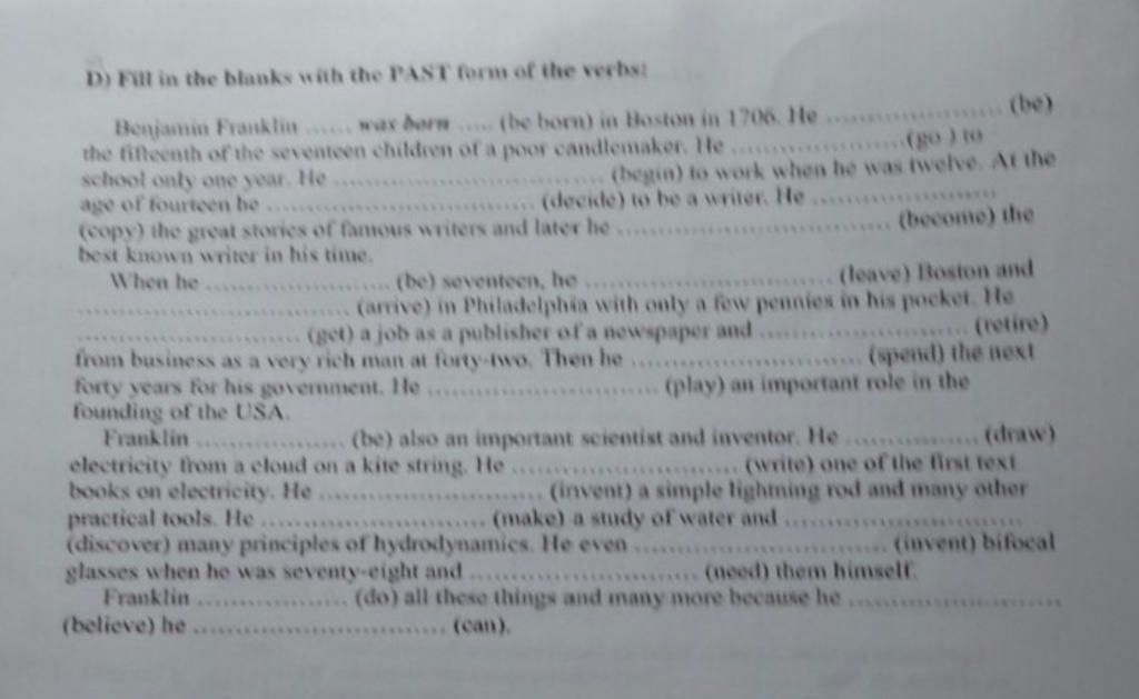 Benjamin Franklin was born (be born) in Boston in 1706. He (be)