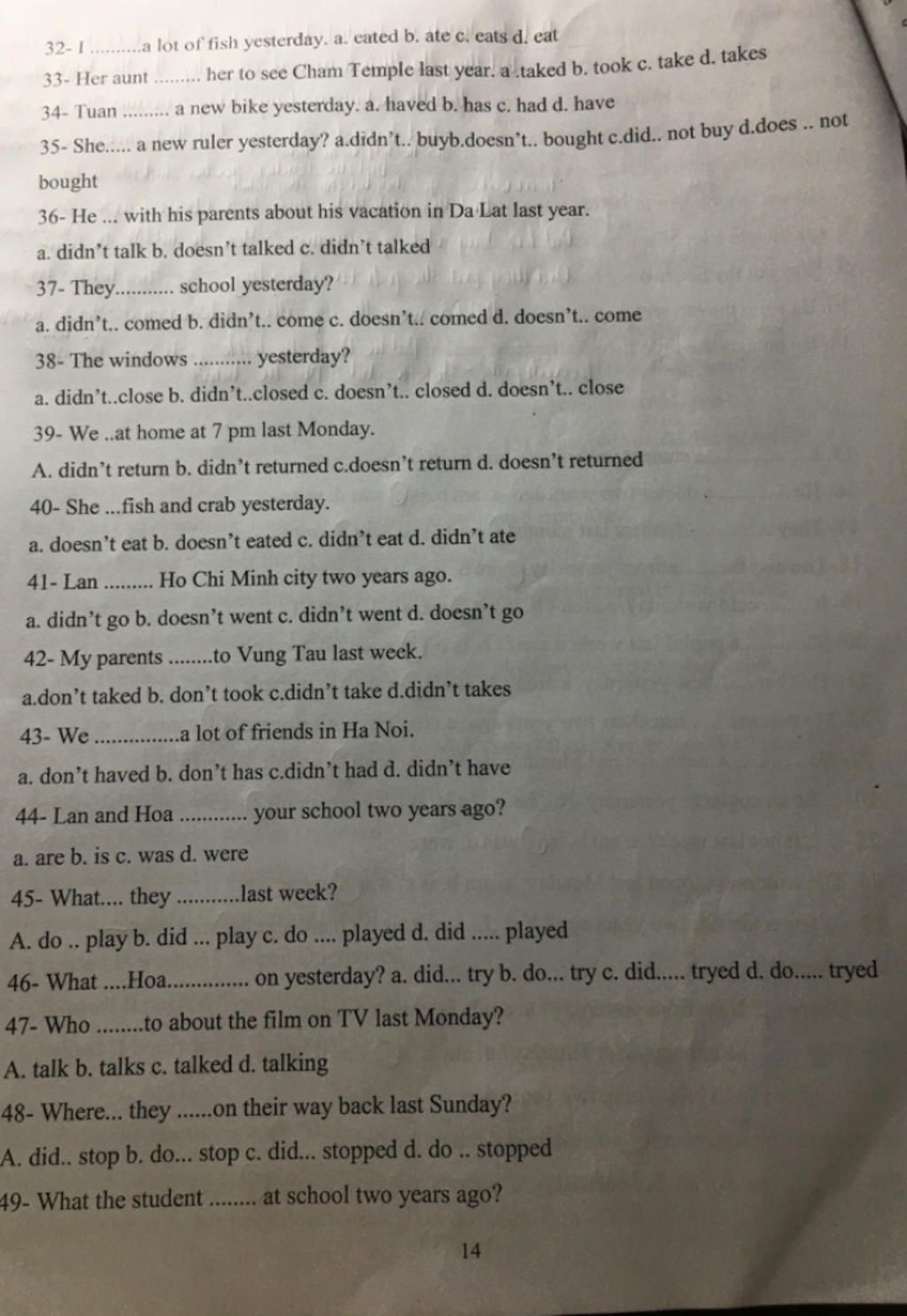 32-1........a lot of fish yesterday. a. cated b. ate c. eats d. eat