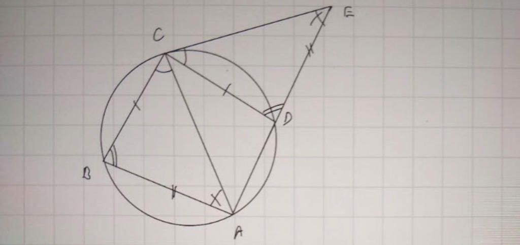 $⇒\widehat{ABC}=\widehat{EDC}$ (cùng bù với $\widehat{ADC}$)