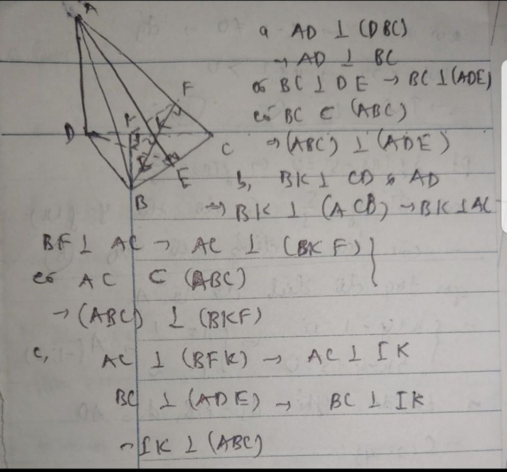 b) vẽ đường cao BF và đường cao BK của ∆ABC và ∆BCD. chứng minh rằng (BFK) vuông góc với (BCD)