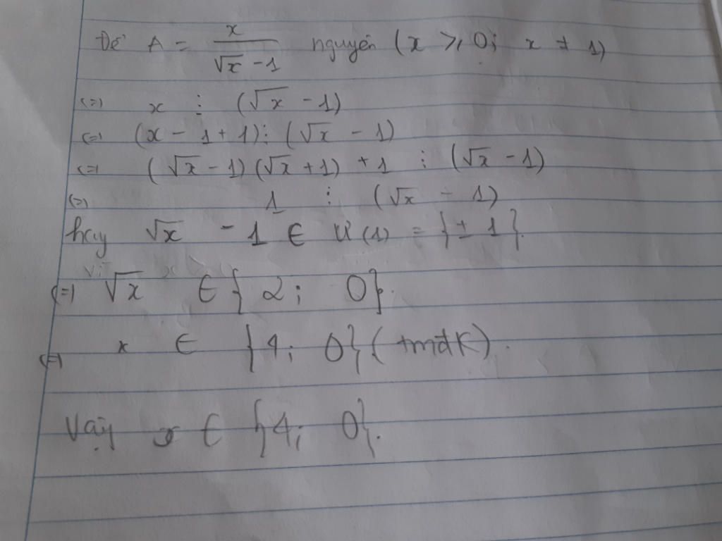 $A = \dfrac{x}{\sqrt{x} - 1} = \dfrac{\sqrt{x} - 1 + 1}{\sqrt{x} - 1}$