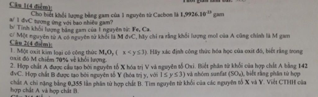1 nguyên tử Ca nặng 6,642 x 10\(^{-23}\) gam