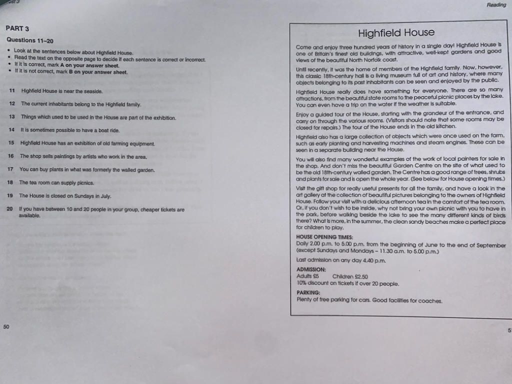 12. B (Until recently, it was the home of members of the Highfield family....the public)