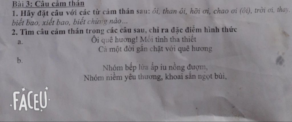 b) Ôi kỳ lạ và thiêng liêng-bếp lửa! là câu cảm thán